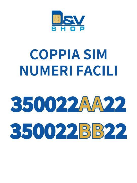 Coppia SIM Numeri Facili 350022AA22* e 350022BB22* operatore Kena mobile, da Attivare**.